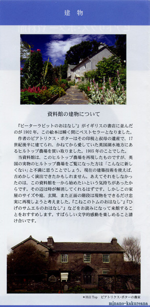 イギリスの絵本で有名なピーターラビットvv BEATRIX POTTER Reference Libraryに行ってきましたv ピーターラビットの資料館です☆ ビアトリクス・ポター資料館 〜ピーターラビットの絵本の世界〜 ![]() 緑豊かなv 埼玉県こども動物自然公園の中に、資料館がたっていますv ![]() 驚くのがその外観v まぁv ピーターラビットの作者、ビアトリクス・ポターの 英国湖水地方にあるvヒルトップ農場そっくりに造られています* 資料館だと思えないほどv かわいいお庭つきのお家ですv* すてき〜vv このお家の中が、資料館ですv 前の畑には、お豆なんかが育っているもようv(笑) ![]() むむっ かかしは、ピーターの服ですっ〜*v やはりピーターの畑かっv ![]() こちらが入口ですvv 残念ながら、中は撮影禁止v でも、館内もまた* ヒルトップ農場そっくりに、造られているのです* 絵本にも登場するv 階段の風景がv 忠実に再現されていますv ![]() そしてv 楽しみなのがv すぐそばにあるギフトショップv* ![]() 山ほどピーターグッズです〜vv ![]() お店の外観v内館もまたv かわいいですvv かわってて面白いのがv ピーターのカチューシャvなるもの* ピーターのうさぎ耳つきですv#(笑) お菓子ではv ショートブレッドも売っていましたv ギフトショップを出たところで☆vv ![]() 偶然にもピーター☆と出会えましたv♪ ゴールデンウィーク中だからかなv ![]() 入館チケットv ![]() 館内には資料がたくさん*ありましたv 絵本の展示やv アニメの上映もありv