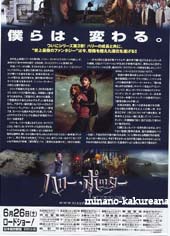 不死鳥の騎士団予約チラシ 何気なく本屋さんに入ったら、 5巻予約チラシが、たくさん置いてありました。v まだ予約してないけど、とりあえず。もらってきました。(笑) 表紙のイラスト。 下巻の絵が、さらにもうちょっと、良く見えます。v amazonさんの写真だと、森の絵は見えてたんだけど。 チラシで見ると、G○○○○の絵が〜。v 2004/4/11 |