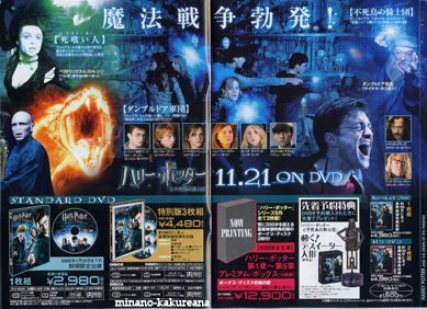 OotPDVDの発売日が発表になりましたv 11月21日v* 帰りぎわ、お店にポスターを発見v 思わず釘づけv 店内を回ってポスター見たり、 予告映像ながめていたら。 店員さんに話かけられてしまいました>v<# チラシを下さった店員さんv ファン心になんて親切v 1枚組みと、3枚組み、そして前作セットのボックスがあると 説明くださり。 さっそく3枚組みを予約*(笑) 3枚! 増えてる。# 160分におよぶ豪華映像特典か。 はっ、しかし、ボックス版は 初DVD化映像を含む、 600分に及ぶ豪華映像特典* 12枚組みってどういうこと?>v</// あ、でも今までが2枚組みだから、 それも全部入ってってことかな? 心くすぐられるけど、とりあえず3枚組みにしてみようv もしかしたら、最終的に7作ボックスが出るだろうし。///(笑) 店員さんによれば、 発売日のお知らせ、今日解禁になったとのこと。 昨日までは秘密だったんです 発売早かったですね、なんて言われていました。 たしかに、まだ公開してる映画館もあるだろうに* 早いv でも、海外の発売日が出たりして、そろそろな感じもしてv しばらく、店頭でまたハリポタが見れるのが嬉しいなv それから、ホグ友の生徒手帳v 身分証名書なんかもついてて、 それっぽい感じですv*v* 寮の名前や、杖の素材。 ペットの種類と特徴を書く欄があるのが ホグワーツっぽいv 2007/10/1 ・ ・ ・ ・ ・ ・ ・ ・ ・ ・ ・ ・ ・ ・ ・ ・ ・ ・ ・ ・ ・ ・ ・ ・ ・ ・ ・ ・ ・ ・ ・ ・ ・ ・ ・ ・ ・ ・ ・ ・ ・ ・ ・ ・ ・ ・ ・ ・ ・ ・ ・ ・ ・ ・ ・ ・ ・ ・ ・ ・ ・ ・ ・ ・ ・ ・ ・ ・ ・ ・ ・ ・ ・ ・ ・ ・ ・ ・ ・ ・ ・ ・ ・ ・ ・ ・ ・ ・ ・ ・ ・ ・ ・ ・ ・ ・ ・ ・ ・ ・ ・ ・ ・ ・ ・ ・ ・ ・ ・ ・ ・ ・ ・ ・ ・ ・ ・ ・ ・ |