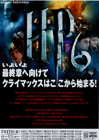 ハリーポッターと謎のプリンス特別イベント☆に行ってきましたv 早朝の映画館です>v<# まずは、賢者の石からの映画、ダイジェスト映像* 間に、今までの来日映像もありv 舞台あいさつや、プレミアv 空港の混雑ぶりが映し出されておりましたv なつかしいです* 続いて、プリンスの日本初公開の映像v ダニエル君から見逃さないでねvのメッセージが流れv 予告が上映です* ロンドンのマグル界の、オフィスのような様子があったり。 マグルも巻き込まれるような、深刻な事態の様子* ジニーがハリーに手をつなごうと言う場面があったりv ドラコが涙している場面があったりv 一番印象に残ったのが、 ケイティー・ベルのシーンです# あの、本で読んだときの、恐ろしさがそのまま 映像になったかのよう><# ネックレスの呪で空中に浮く、ケイティーの様子は もうホラーです><# 怖い〜><;(恐) いや、本より怖かったかも# そして、ハリーがスネイプ先生に攻撃し、 跳ね返される場面も一瞬映っていましたv とっても期待大です!☆ ゲストで登場したのは、 里田まいさん* ハーマイオニーの衣装で登場されv 最近ハリポタが好きになったとのお話v ネビルが痩せてきたことが、気がかりとのこと#(笑) そしてv抽選会がv どうやら、ジャパンプレミアは、7月6日に行われるようです☆ 日本公開は、7月17日ですv(追伸*←日本公開が15日に繰り上がりv) そして、お土産にv 缶バッチv プレス用パンフを頂きました♪v 嬉しかったのが* ダニエル君から、イベント参加者へのお手紙ですvv わぁ〜vv どうやら、死の秘宝の撮影中の様子です* 最後に、恒例の、 「ハリーポッター大好き〜♪ わぁ〜!!」とみんなで言いながら 記念撮影しましたv(笑) 2009/4/19 ・ ・ ・ ・ ・ ・ ・ ・ ・ ・ ・ ・ ・ ・ ・ ・ ・ ・ ・ ・ ・ ・ ・ ・ ・ ・ ・ ・ ・ ・ ・ ・ ・ ・ ・ ・ ・ ・ ・ ・ ・ ・ ・ ・ ・ ・ ・ ・ ・ ・ ・ ・ ・ ・ ・ ・ ・ ・ ・ ・ ・ ・ ・ ・ ・ ・ ・ ・ ・ ・ ・ ・ ・ ・ ・ ・ ・ ・ ・ |