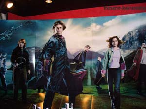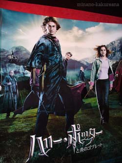 GoF先行上映&舞台挨拶。* GoF先行上映&舞台挨拶に行って来ました〜♪* 有楽町の方へ行きましたが、 人垣が出来てるかと思ったら、 意外に混んでいなくて。 それにハリポタ衣装を着ている方も少数? 一瞬、時間間違えたかと思っちゃいました。^^/// どうやら映画館自体、小さめな方の会場だったみたい。 そのせいか思いのほか、座席から舞台が近く感じました。v 入り口で、代表選手サポートブレスレット?のようなものを もらい。(笑) 中には、パネルが飾ってありました。v 写真は、パネルです。v^^ 上映前に、まずは舞台挨拶。v デイビッド・ヘイマンプロデューサーが登場♪ それから、セドリック役のロバート・パティンソン、 エマちゃんに、チョウ役のケイティー・ラング、 来場のリストに、プロデューサーと監督の名前が 載っていなかったから、 いらっしゃるのかどうか、とっても気になっていましたが。* マイク・ニューウェル監督登場!* きゃ〜。v嬉しい。* 皆、こんにちは東京*と挨拶してくださいました。v ちょっとびっくりしたのは、エマちゃんが大きく見えたこと。 思ったより、身長高いのかも。v ほんとに綺麗。* それから、ケイティーちゃんも、とってもかわいい。* キラキラして素敵なイヤリングをされてたのが印象的。v 映画を楽しんで。vというようなことを皆言われてたけど。 監督のコメントがとっても面白かったです♪ 前から3、4列目までの席の人はスクリーンから近くて この映画はちょっと危険なので。 危ないとのこと。(笑) 怪我をした人は、右の扉へ。 精神的ダメージを受けた人は、左の扉へ行くと メディカルスタッフがいるから。なんて、おっしゃってました。/// (爆笑) ああ、そんなお茶目なところが、 映画の面白さに出てるのかも!*なんて、 思ってしまいました〜。(笑) そして舞台挨拶の後、 今日来られなかったルパート君からのお手紙を、 司会の方が読んでくださいました。 今月初めに、お祖父さんが亡くなられたので、 来られなかったとのこと。 お祖父さんは、ルパート君の映画のファンだったそうです。; でも、お祖父さんに、最新作ゴブレットの映画を 見てもらうことが出来たそうで。* この内容を聞いて、ジーンとしてしまいました。* ワールドプレミアにはルパート君参加していたから、 その後だったのでしょうか。。 でも、お祖父さんが映画を観ることが出来て何よりです。* その後、映画の撮影中で来られなかったダニエル君からも 映像メッセージがありました。vv 記者会見の時のと、同じのかな? 見れるとは思わなかったから、嬉しかった〜。v 映画の見所を教えてくれました。v^^* ファンレターに感謝していることも。v 次回は来られたら良いのにな〜♪v アズカバンの時は、監督が3・2・1でシャッターを切って〜! と言ったほど、 写真を撮ってもOKだったけど 今回は厳しくなったのかダメだったので。 代わりに、ヘイマンさんが3・2・1でシャッターを切るので、 会場の皆で一斉に手を上げて欲しいと言われました。v(笑) 写っているかな?^^/// *参照*FilmMagic*舞台挨拶 ↑これは、六本木?v 有楽町の方にもカメラがいくつか来ていました。 特番を撮影しているとか言っていたみたい。 いつやるのかな〜?v^^ 映画感想。 ネタバレ注意* ↓ ↓ ↓ ↓ ↓ ↓ ↓ 今回で3回観ましたが。v だんだん落ち着いて観れるようになってきたら、 クラウチジュニアがすごいな〜。///と思ってきました。 蛇のような演技。。 クラウチ氏が死んでしまう前、 ムーディー姿のクラウチジュニアが、クラウチ氏と話す場面で、 姿はムーディーだけど、クラウチジュニアの独特な 蛇のような仕草をしてますね。/// もしやあの場面で、クラウチ氏は、彼が息子だと気が付いた。 ようなことを表現しているのかな? じっくり観たら、いろんなところがあるんだろうな〜。* そして後半のあたり、なぜかどうしても 6巻のことが思い出されます。/// それを考えてしまうと、よけいに涙出ました。; 2005/11/19 |